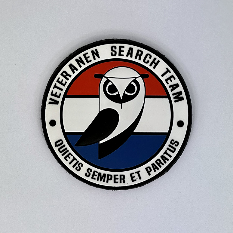 Ronde badge met logo van het Veteranen Search Team